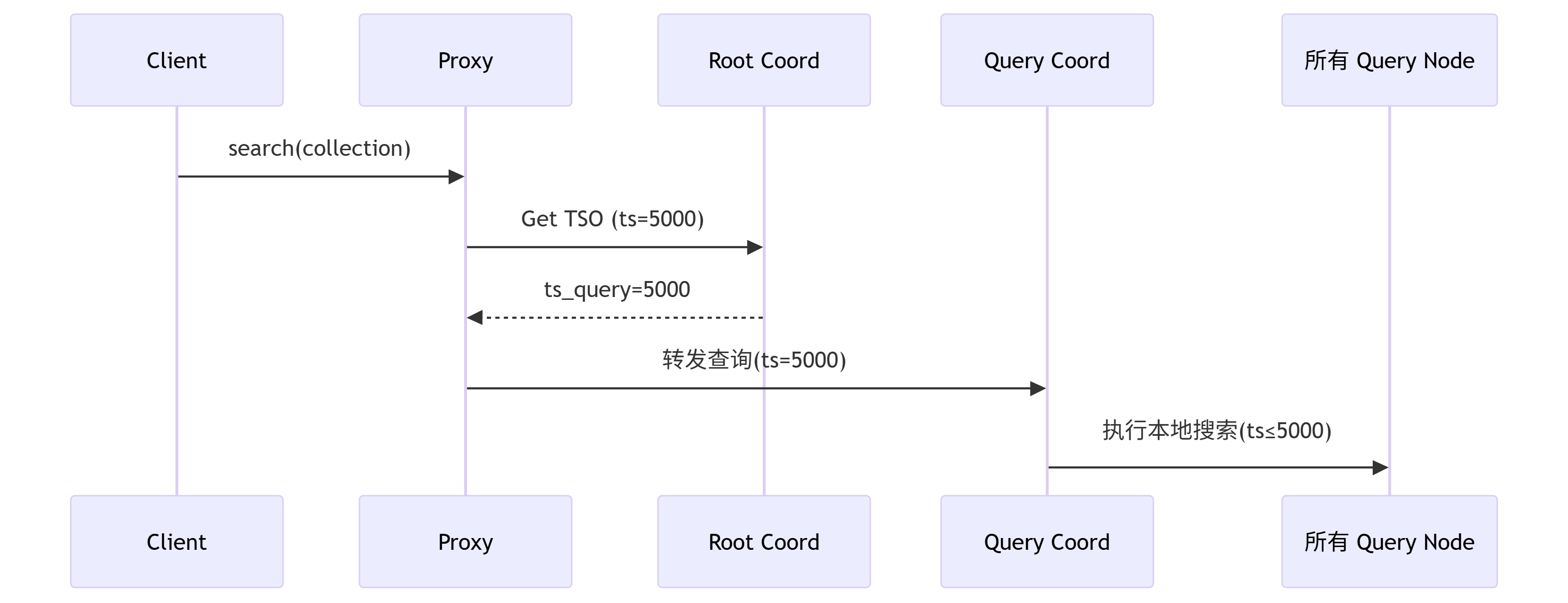 tso = root_coord.alloc_timestamp() # 分配全局唯一时间戳