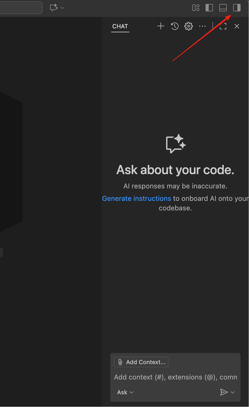 你可以下载安装 VS Code,在点击右上角的侧边栏入口,打开 AI 功能区域,体验这些能力。
