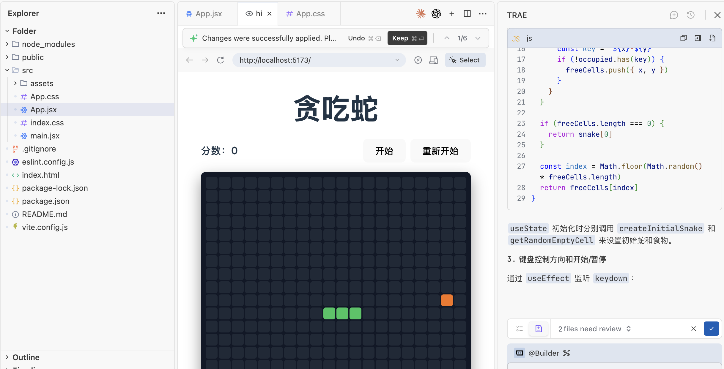 4.3 第二步:在侧边栏聊天,让 AI 用 React 设计贪吃蛇游戏