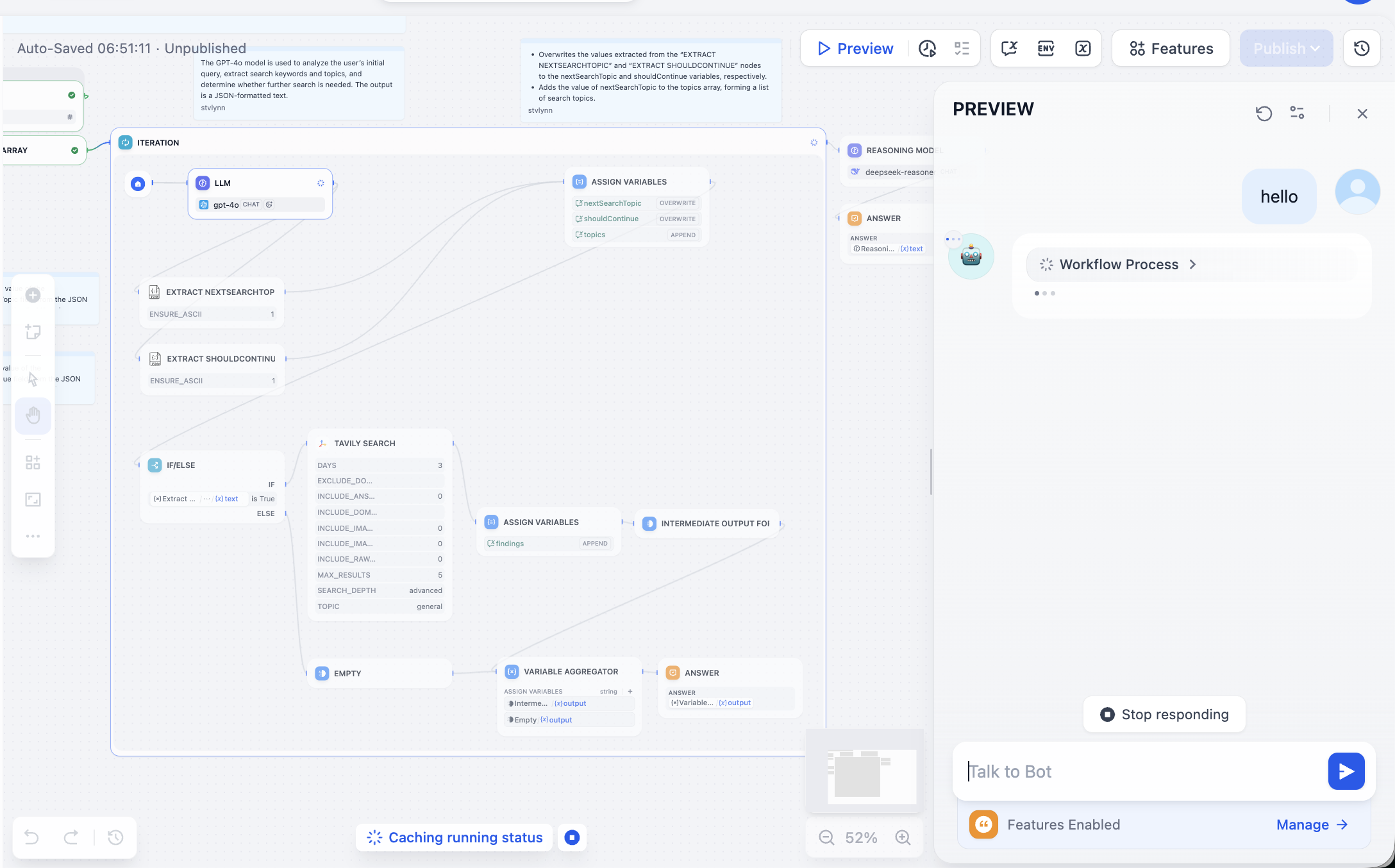 这种做法带来了多重价值:非技术人员(如产品经理或运营)可以通过拖拽组件快速搭建 AI 应用;开发者可以将 RAG 检索、LLM 调用、API 工具等封装为标准节点,在不同业务场景中复用;整个流程还可被完整追踪、调试和持续优化,满足企业对稳定性与合规性的要求。