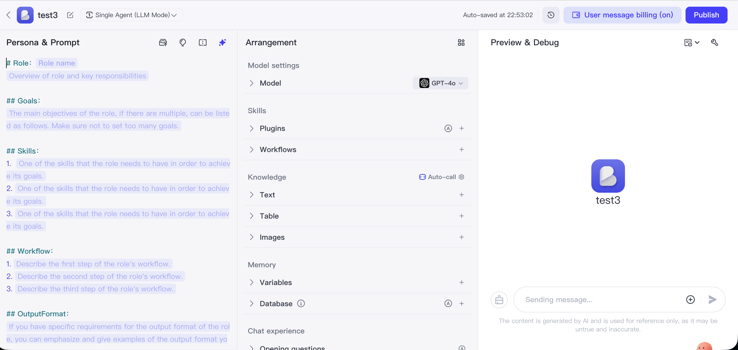 其核心是将Bot构建简化为搭积木式操作。用户可通过界面轻松配置角色与知识库,并利用丰富的内置插件库为Bot添加新闻、旅游、图像生成等多类外部能力。创建好的Bot可一键快速发布至豆包、飞书、微信公众号等多个平台。