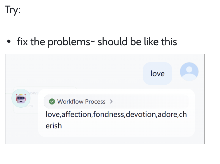 在这个解密挑战中,你需要修复当前工作流的问题,让工作流最后的输出类似如下显示: