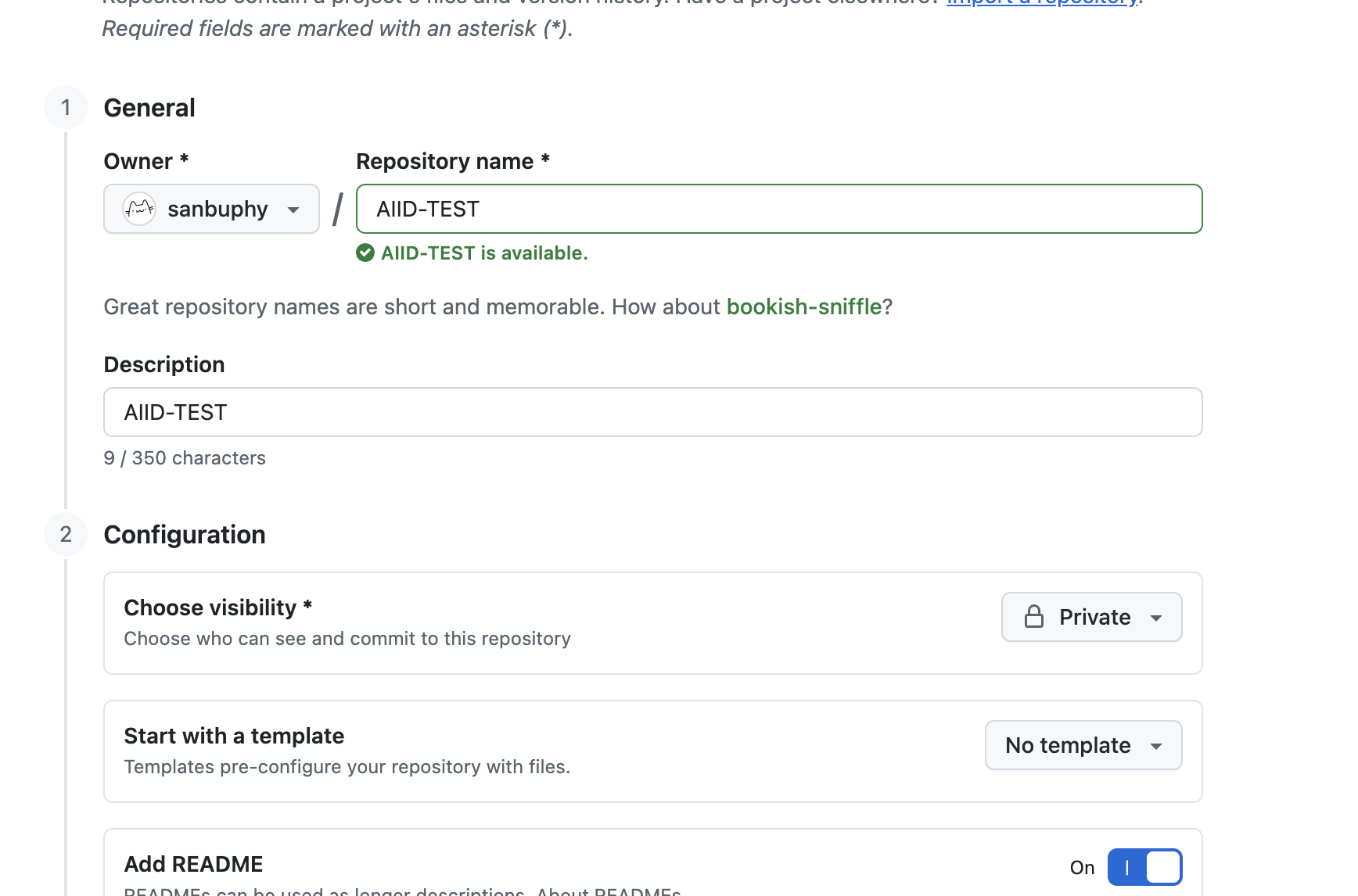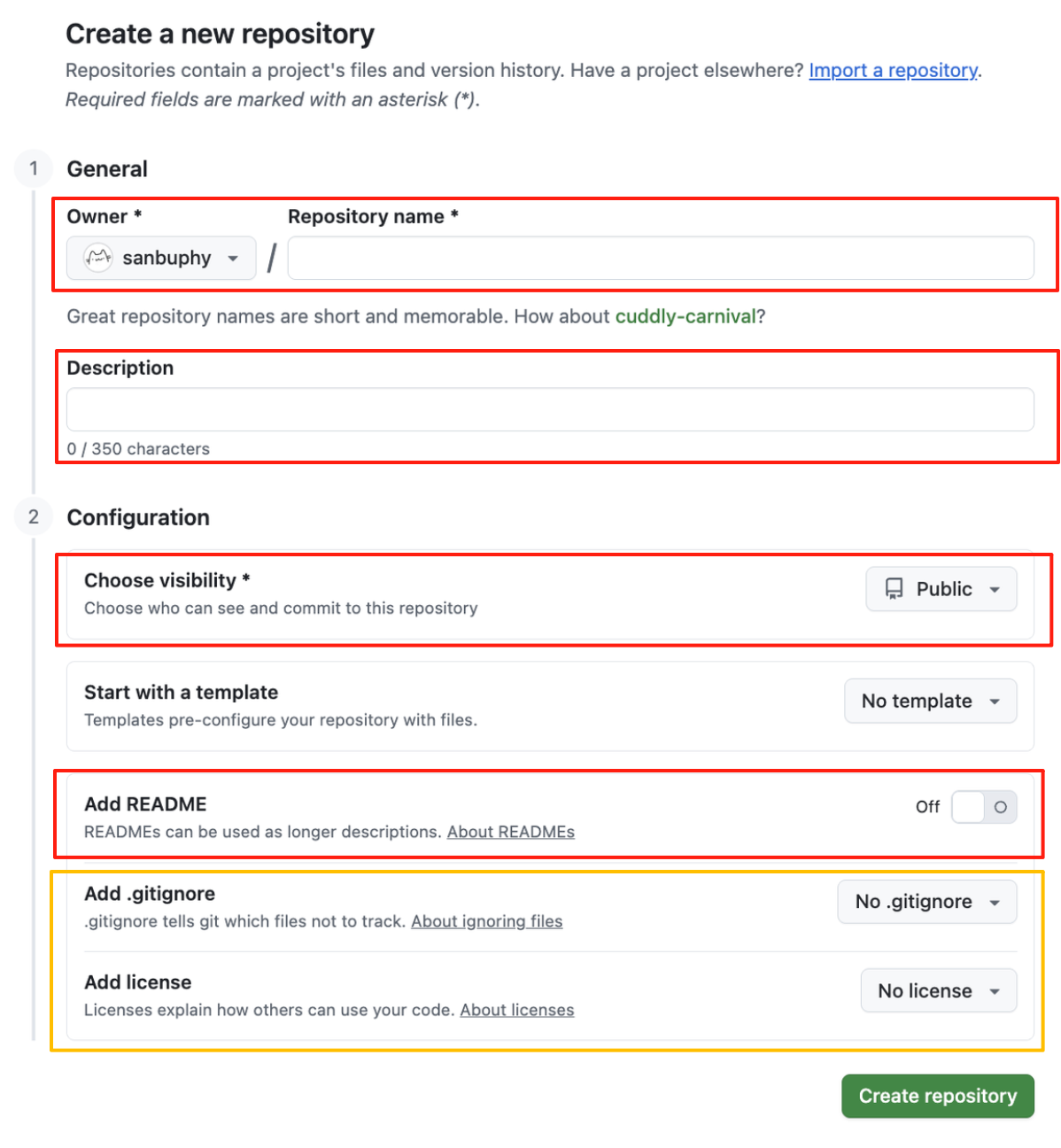 - Repository name:向他人显示的仓库名称。