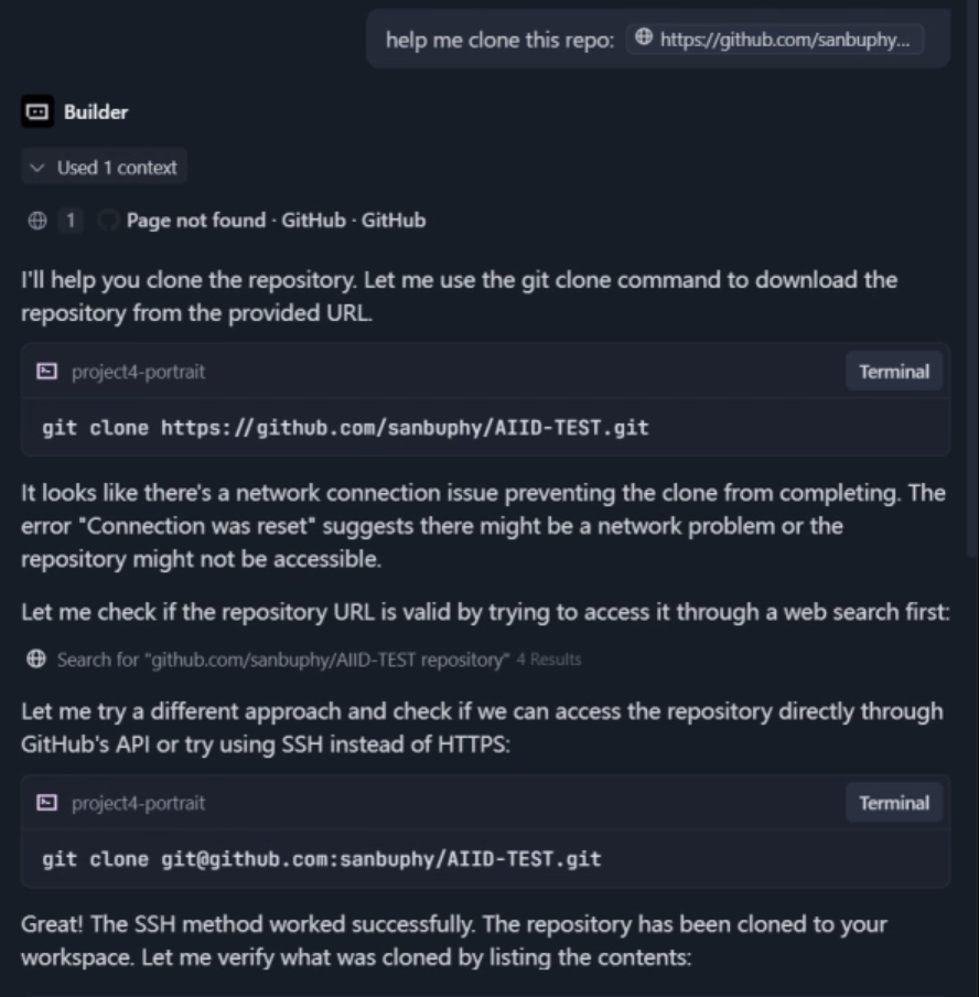 我们已经解释了什么是 Git,什么是 GitHub,什么是 SSH,以及如何配置它。现在你可以自由使用 Trae 执行 Git 操作。首先,让我们学习如何将远程仓库克隆到本地机器。