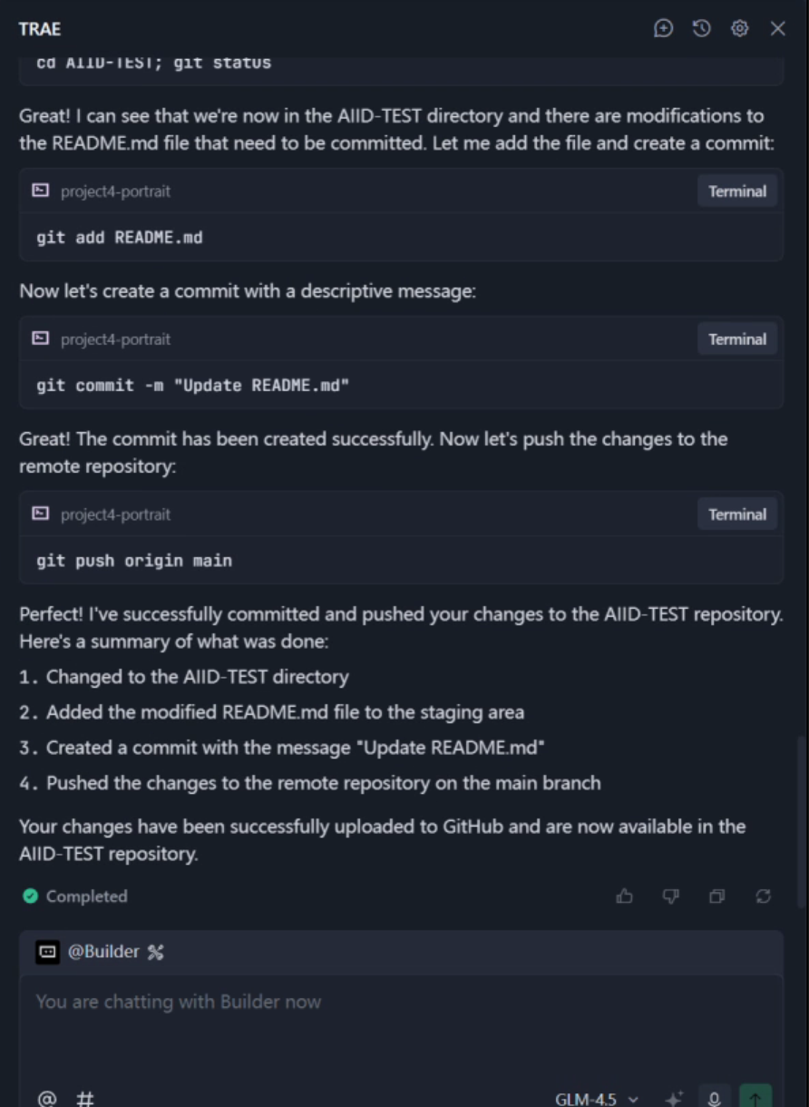 一切准备就绪后,你可以尝试修改本地文件,在文件夹中添加或删除项目。然后,让 Trae 检测更改并帮你推送到 GitHub。