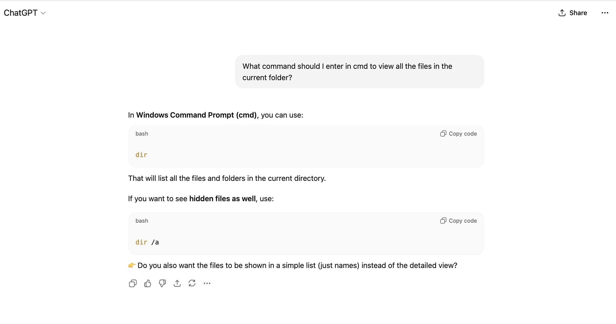 你可能会想,如果记不住所有那些终端命令该怎么办。事实上,随着大语言模型的快速发展,不再需要像以前那样死记硬背了。现在,你只需要在需要时询问模型(例如“如何用 Git 获取远程代码?”或“如何通过命令行删除文件夹或批量创建文件夹?”),然后从回复中复制有用的命令即可。
