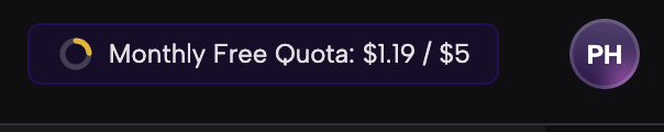 在页面右上角,你还能看到自己的余额。默认情况下,每个月会有 5 美元左右的免费额度。关于细节计费规则暂时可以不用太在意,只需要知道:只要服务器在运行,就会消耗额度。