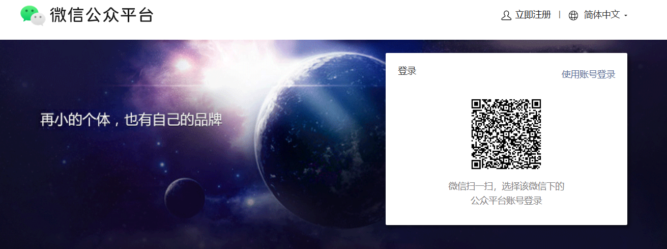 - 在浏览器地址栏输入 https://mp.weixin.qq.com ,打开微信公众平台网页,用你的微信扫码登录。