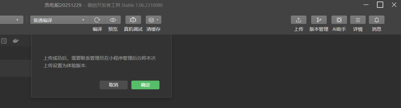 - 用微信开发者工具上传当前版本。