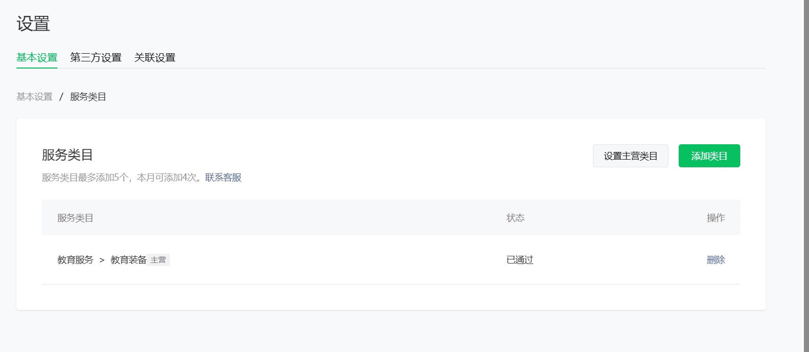 确认类目后,点击保存。如果页面提示「创建类目成功」,并在列表中显示你刚刚添加的那一项,就说明这一步已经完成。