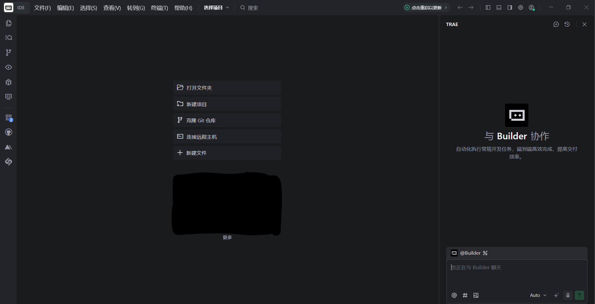 你可以 先安装 Trae 。打开浏览器访问 https://www.trae.cn ,根据页面提示下载适合你系统的版本。安装过程和普通软件一样,双击安装包,按提示完成即可。安装完成后,你会得到一个可以打开本地文件夹、查看代码、和 AI 对话的 IDE,后续所有 vibecoding 步骤都会在这里进行。