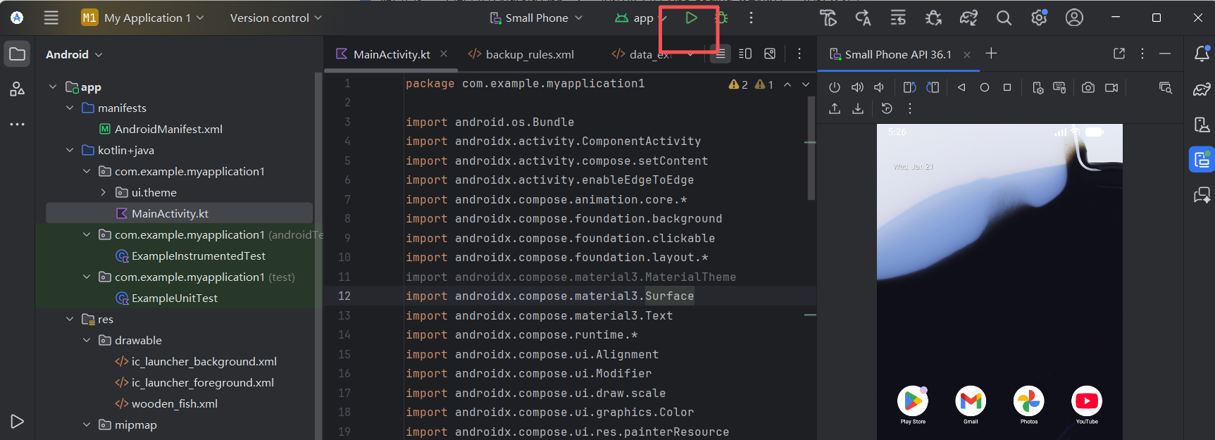 - Android Studio(构建工厂) :负责提供编译环境,将代码打包成可运行的 App,并提供模拟器预览。