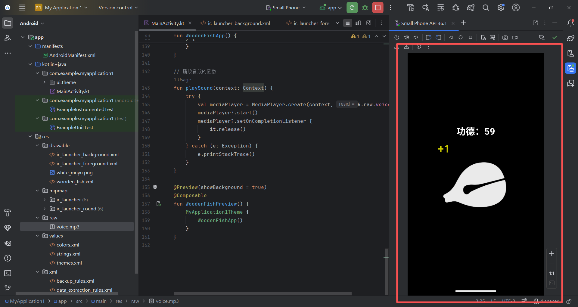 好了,教程到这里就结束了。看着手机上自己亲手做出来的“电子木鱼”,不知道你现在心情如何?