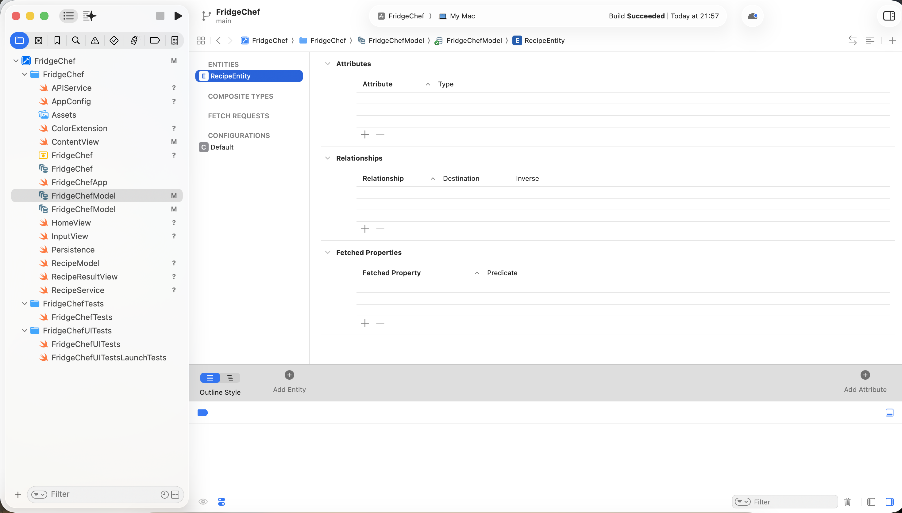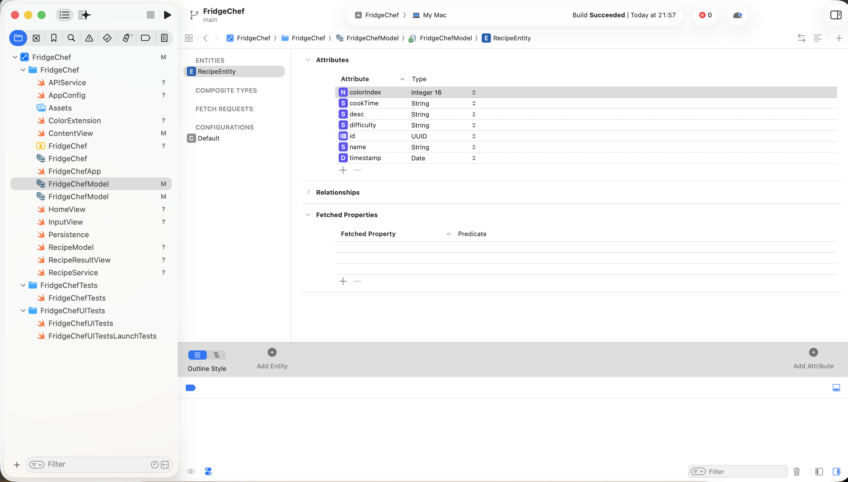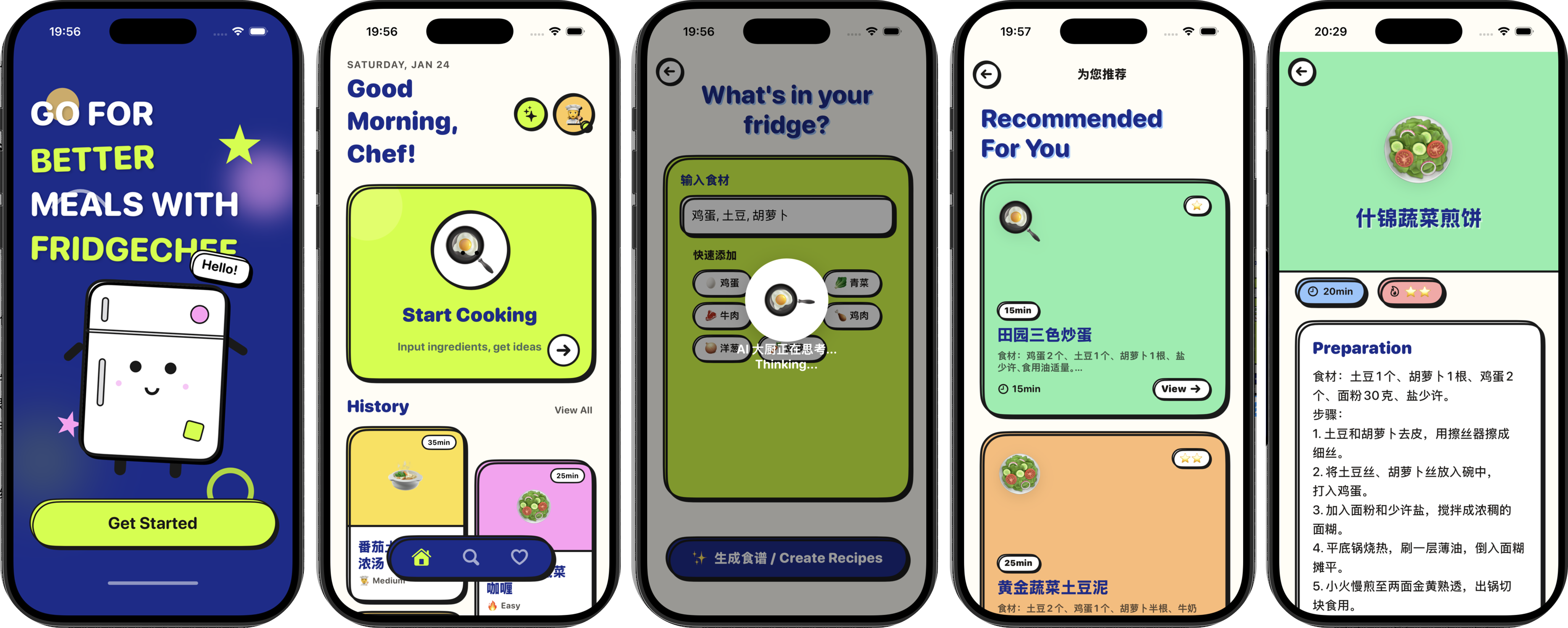 用户输入冰箱中现有的食材,应用会通过真实的 AI 接口生成一份可行的菜谱,并将结果保存到本地,方便后续查看。该示例完整覆盖了一个真实 iOS 应用所需的核心组成部分,包括界面输入与展示、网络请求、数据解析、本地存储,以及最终在真机上的安装与运行。
