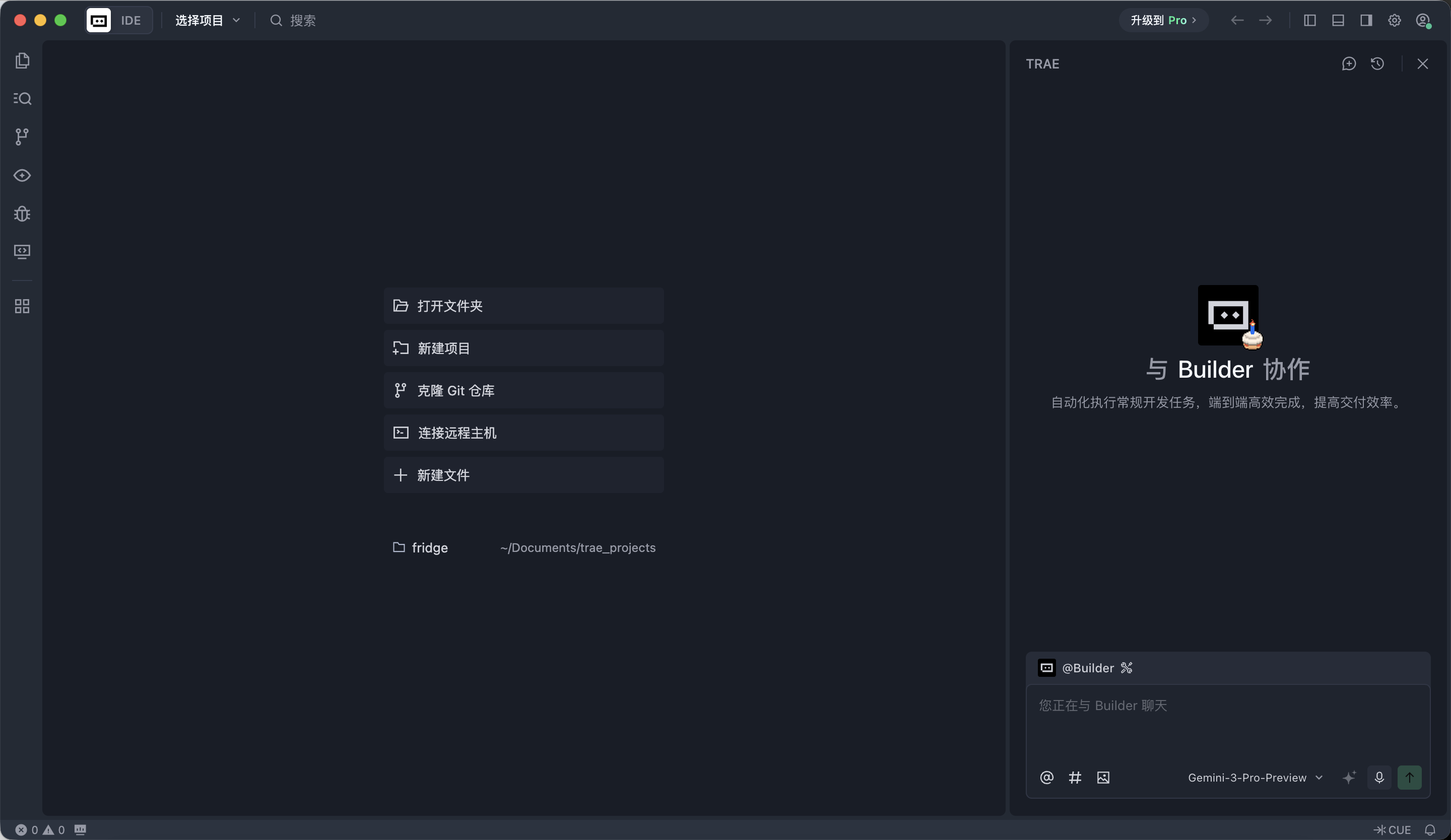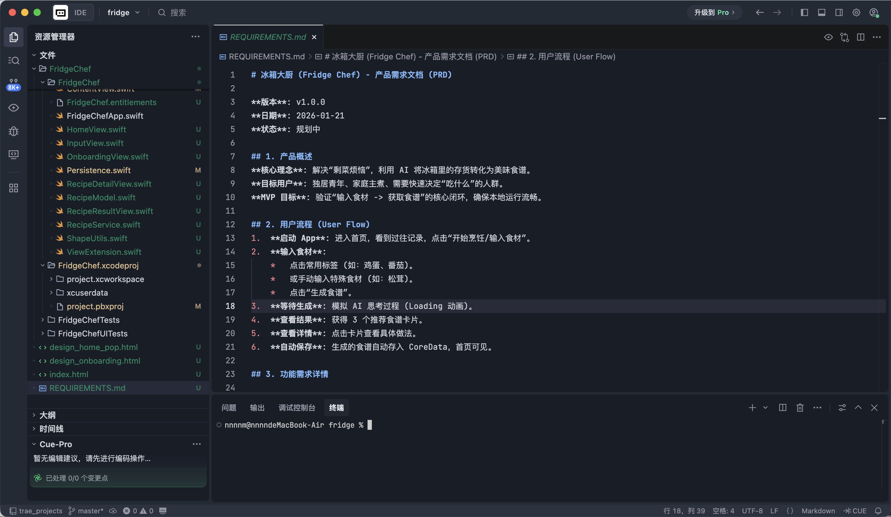 Trae 是本教程中进行主要开发工作的环境。你会把整个 iOS 项目放在 Trae 中,通过对话的方式与 AI 协作完成开发。