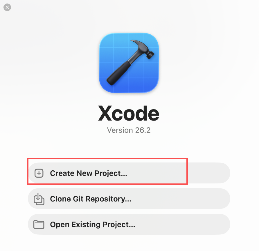 打开 Xcode。在欢迎界面中,选择创建一个新项目。