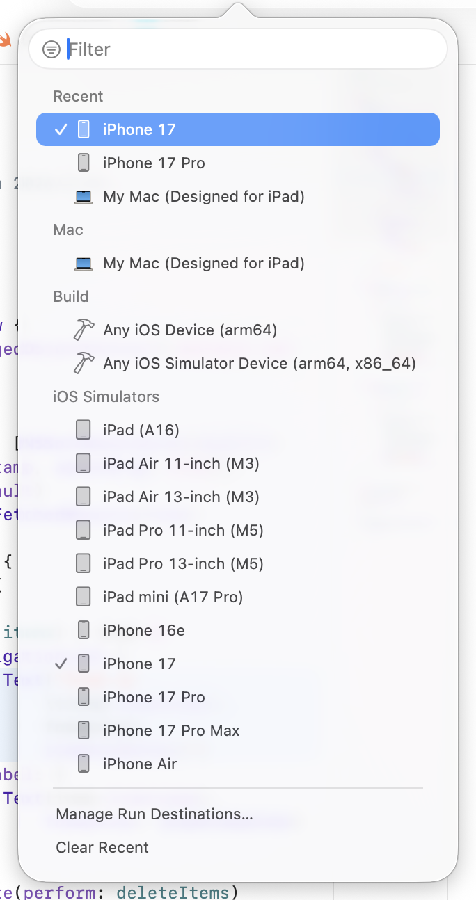 在 Xcode 的设备列表中,选择你的 iPhone,然后再次点击 ▶️ Run。