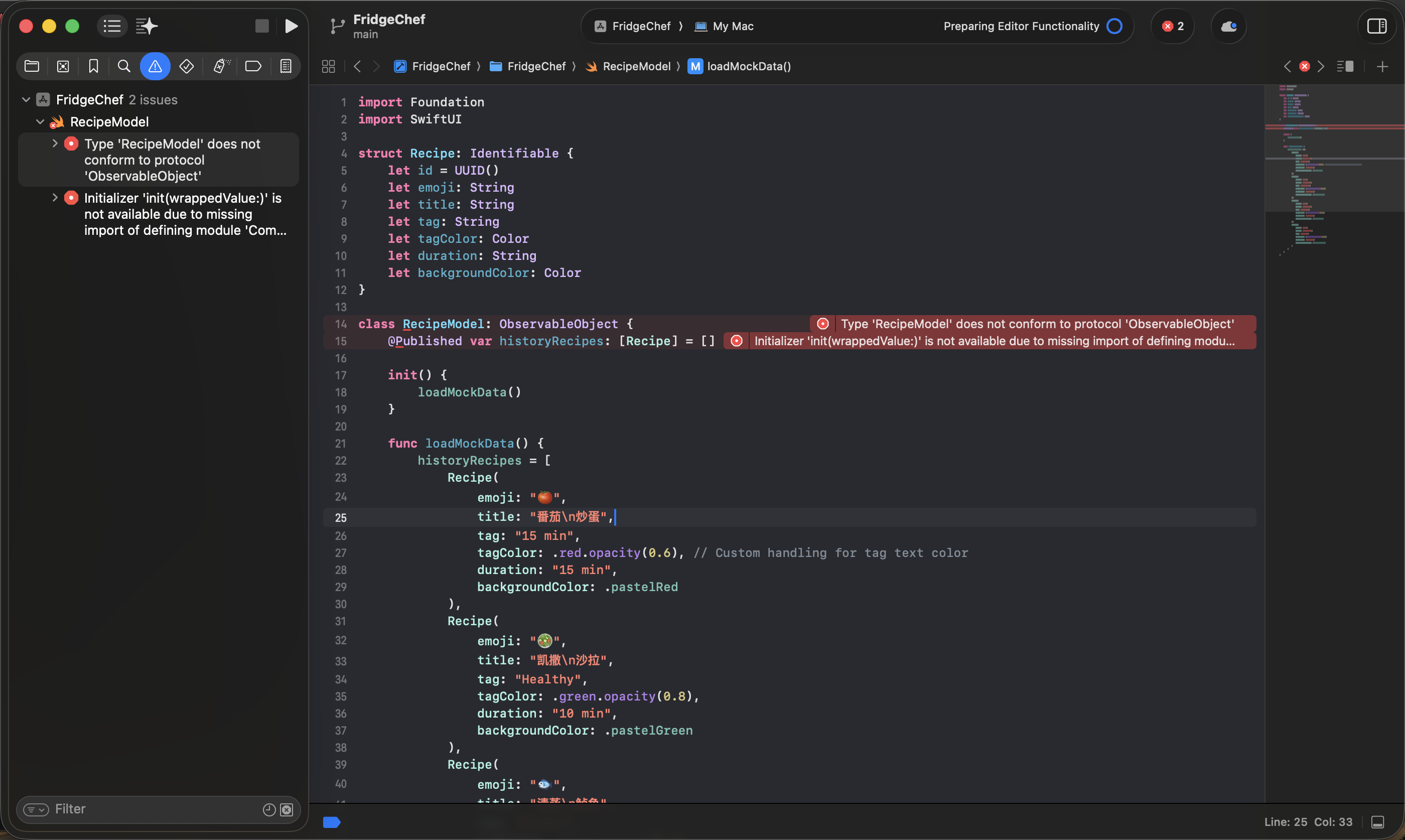 - 编译错误 Swift 语法、类型不匹配、缺少参数等问题,Xcode 会直接报红。