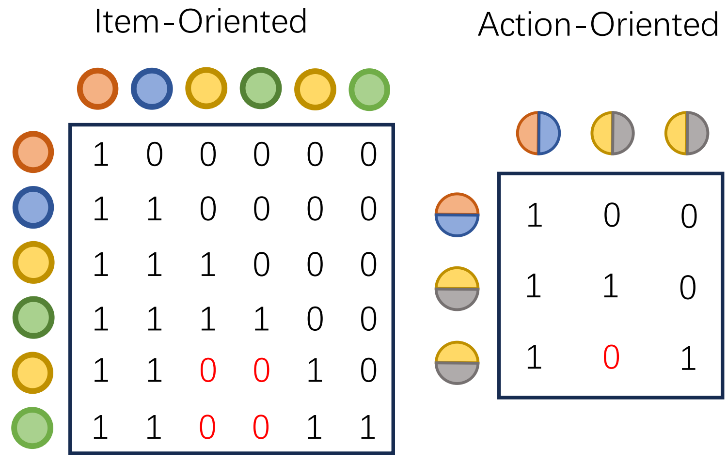 其中\(a_i^{(x_i)}\)表示“用户对物品\(x_i\)产生的行为\(a_i\)”。这就是Action-Oriented Organization(行为导向组织)。