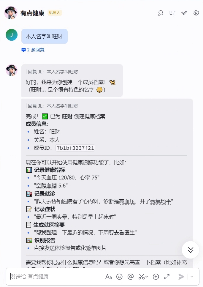 Once you have it running, you will have a health data hub you can use long-term: record anytime, query anytime, and quickly organize before a doctor's visit.