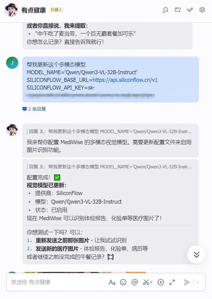 bash ~/.openclaw/workspace-health/skills/mediwise-health-suite/install-check.shMultimodal Configuration (for Image/PDF Recognition)