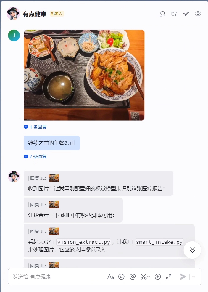 It is used here only as a runnable example to demonstrate how to set up a "record, track, and organize" health management workflow. You can substitute your own existing health management Skill — the approach is the same.