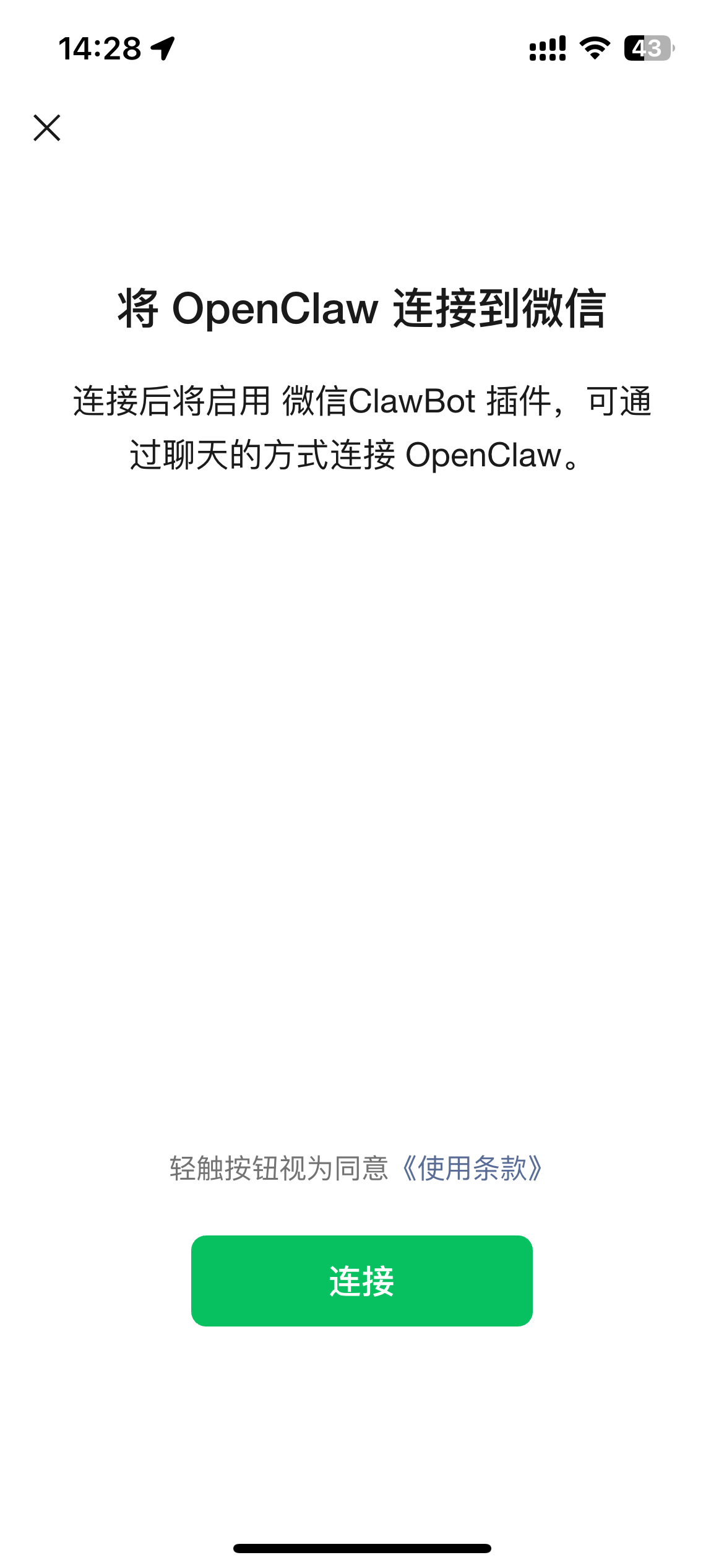 启动后会自动弹出二维码,用微信扫码即可连接。