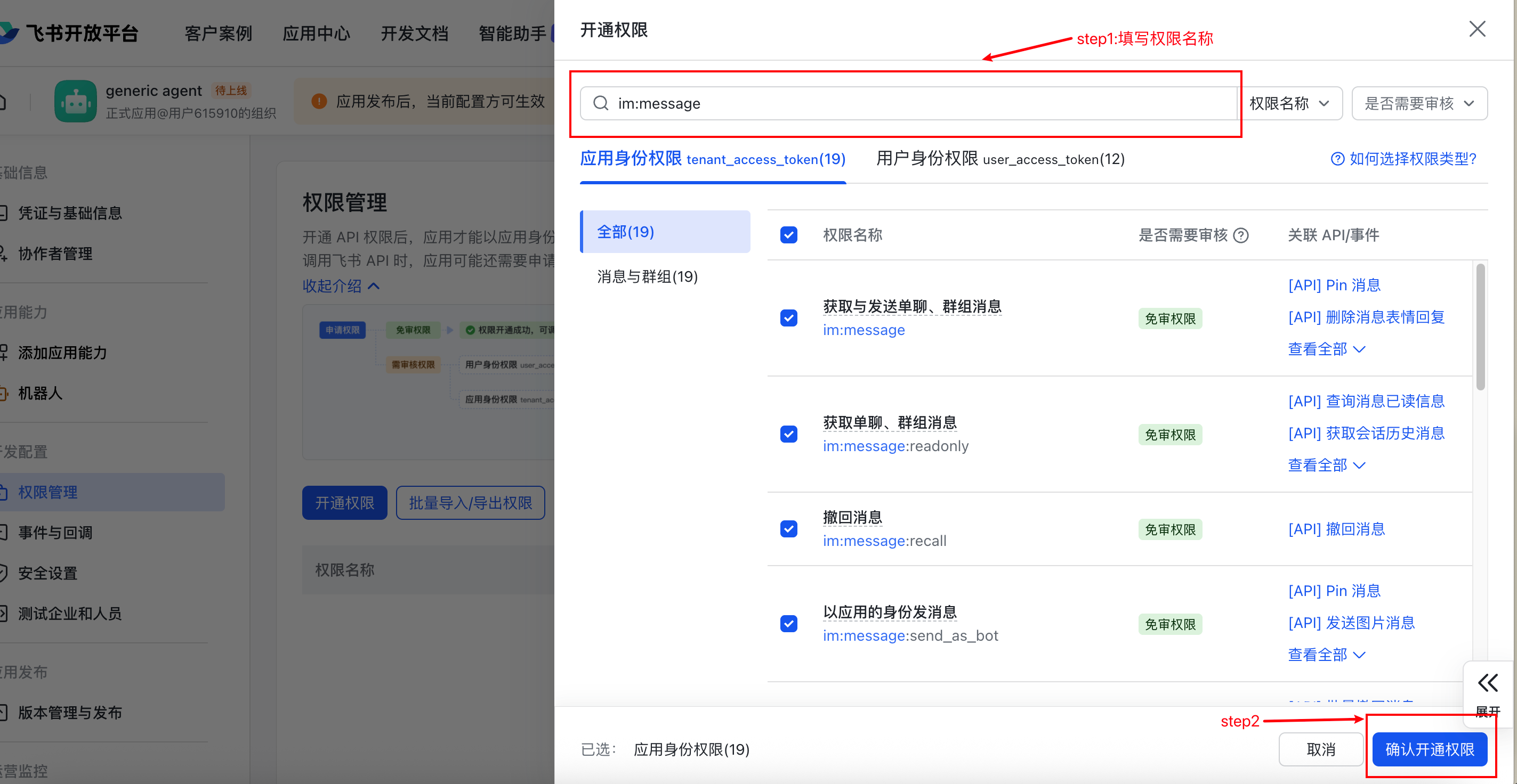 - 回到飞书开放平台的应用配置页面: