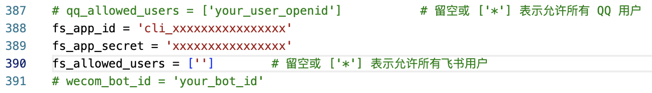 fs_app_secret = 'xxxxxxx' # 替换为你的 App Secret