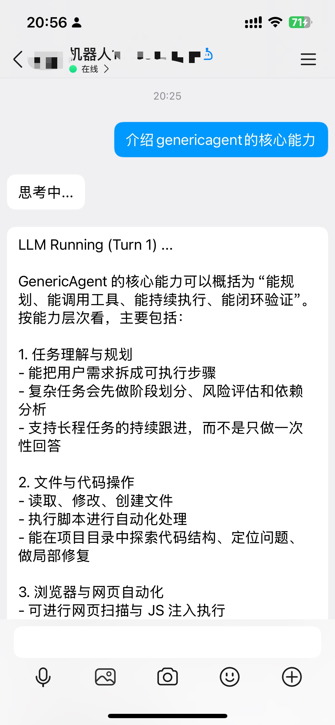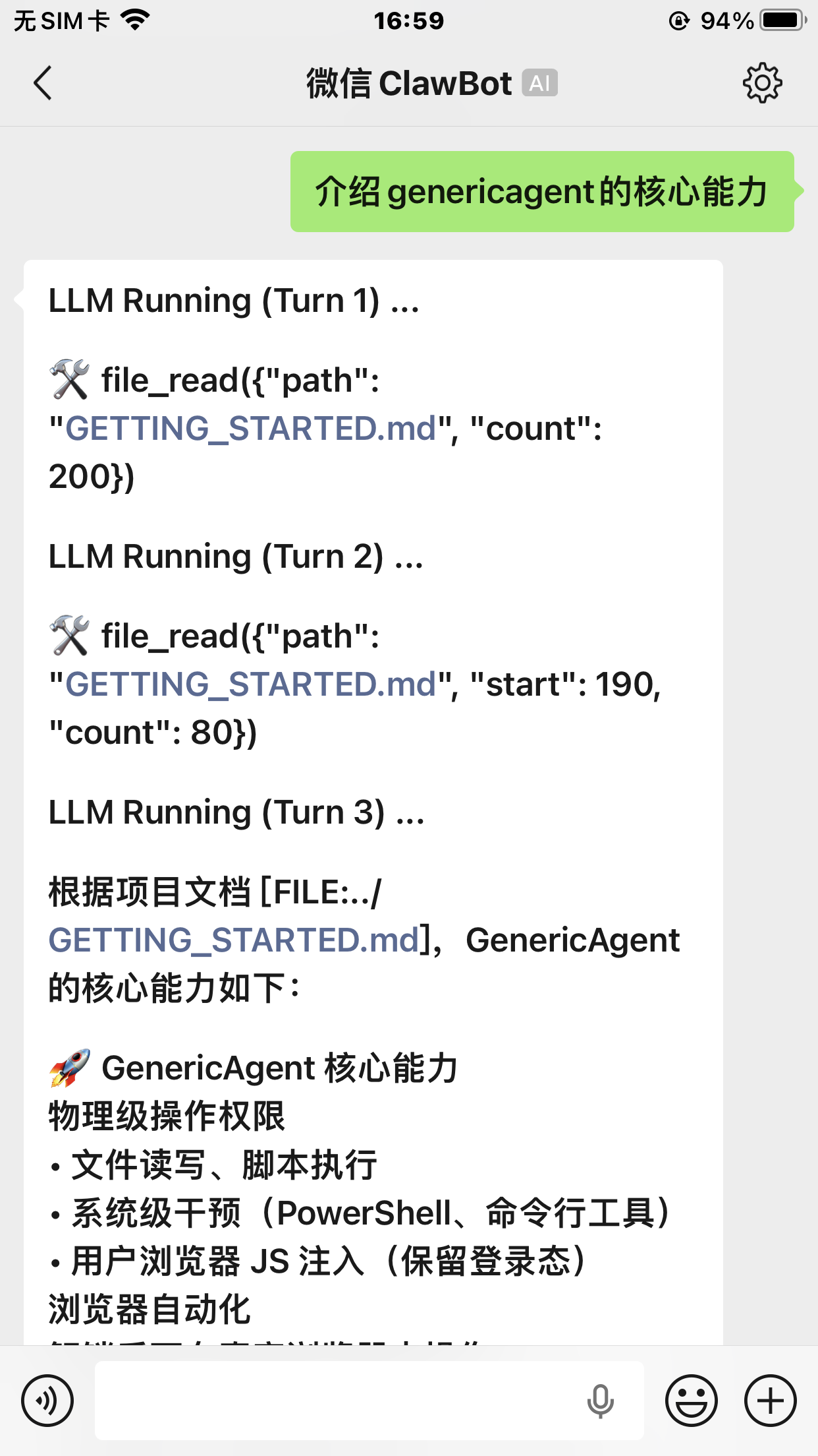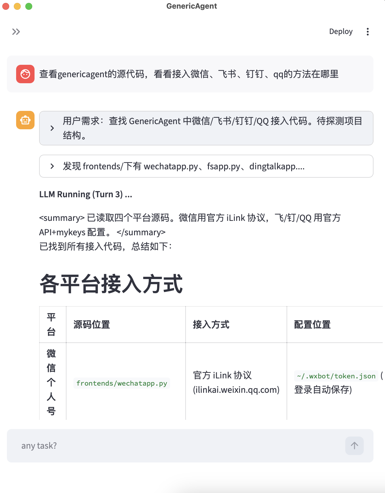 学完本章,你可以把 GA 接入微信、飞书、钉钉等聊天平台,随时随地用手机给 Agent 下任务。