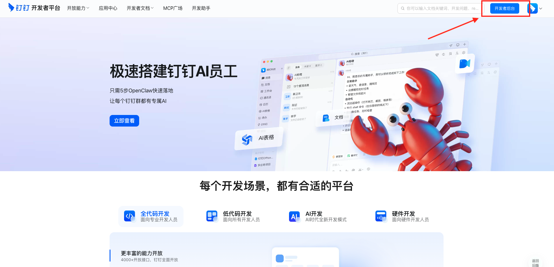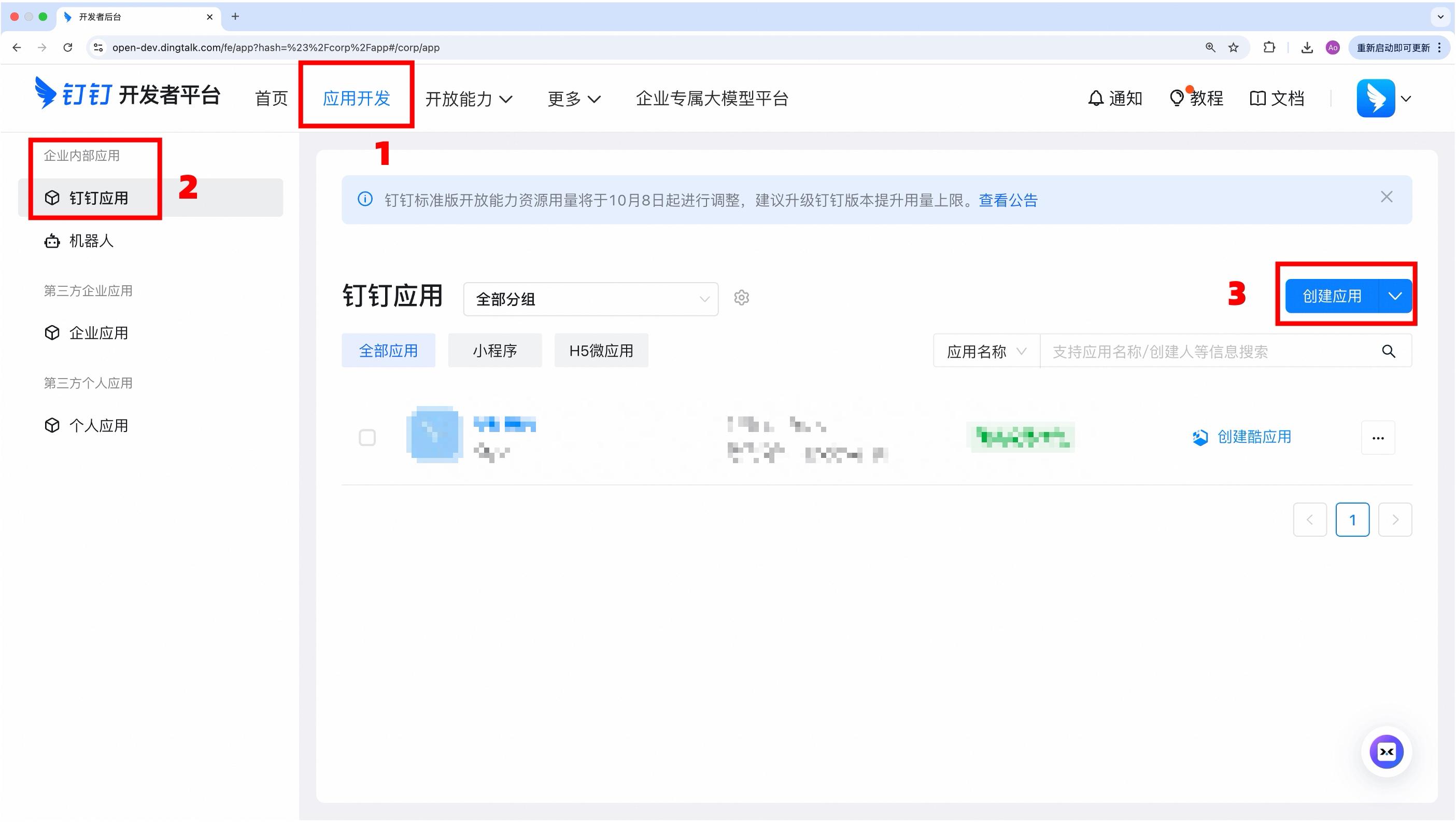 - 登录 钉钉开发者后台(需企业管理员账号)
