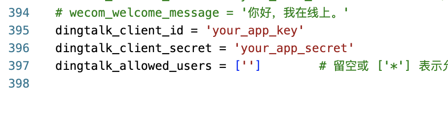 | 钉钉 | frontends/dingtalkapp.py | dingtalk-stream | dingtalk_client_id, dingtalk_client_secret |