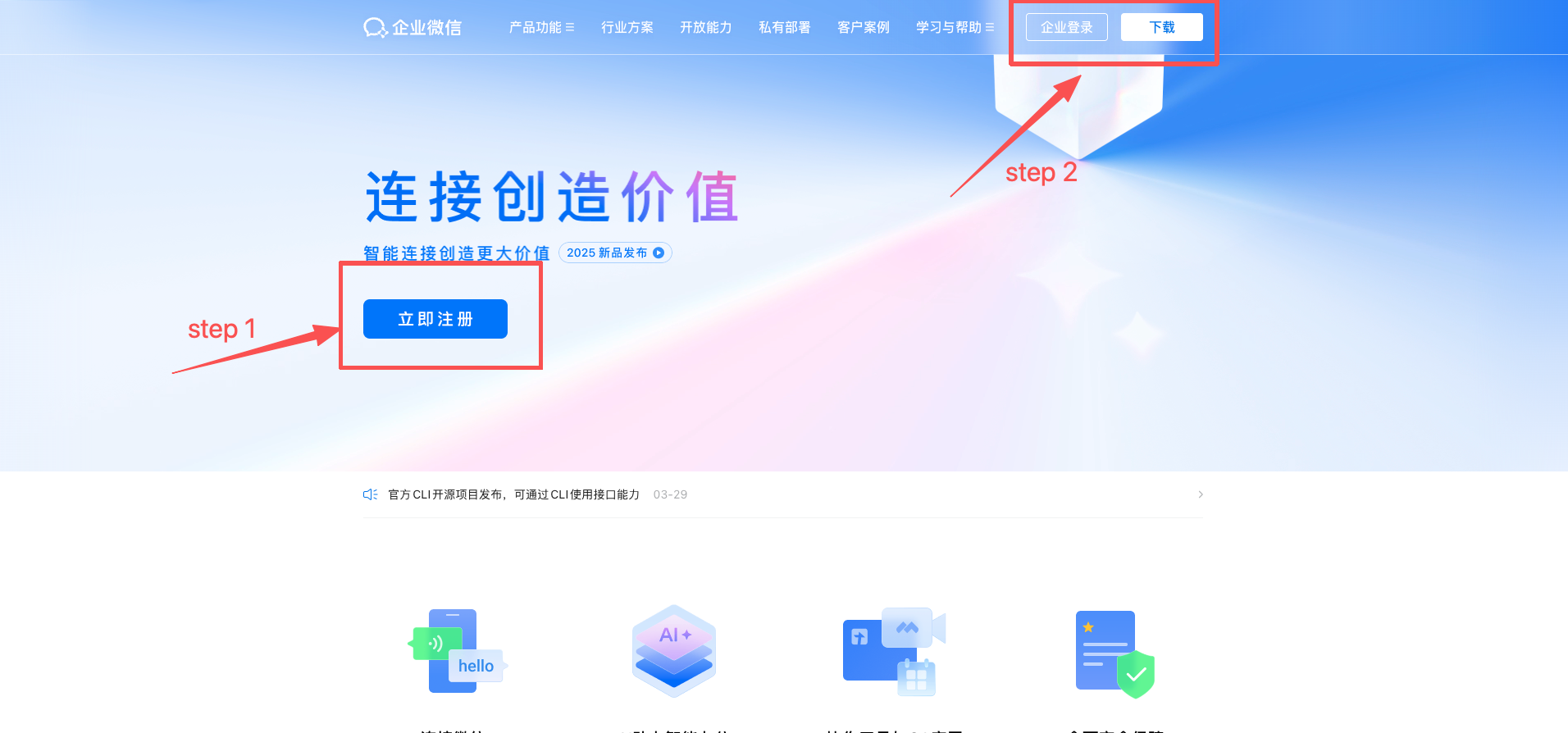 - 打开 企业微信官网,注册账户(或登录已有账户),下载桌面端