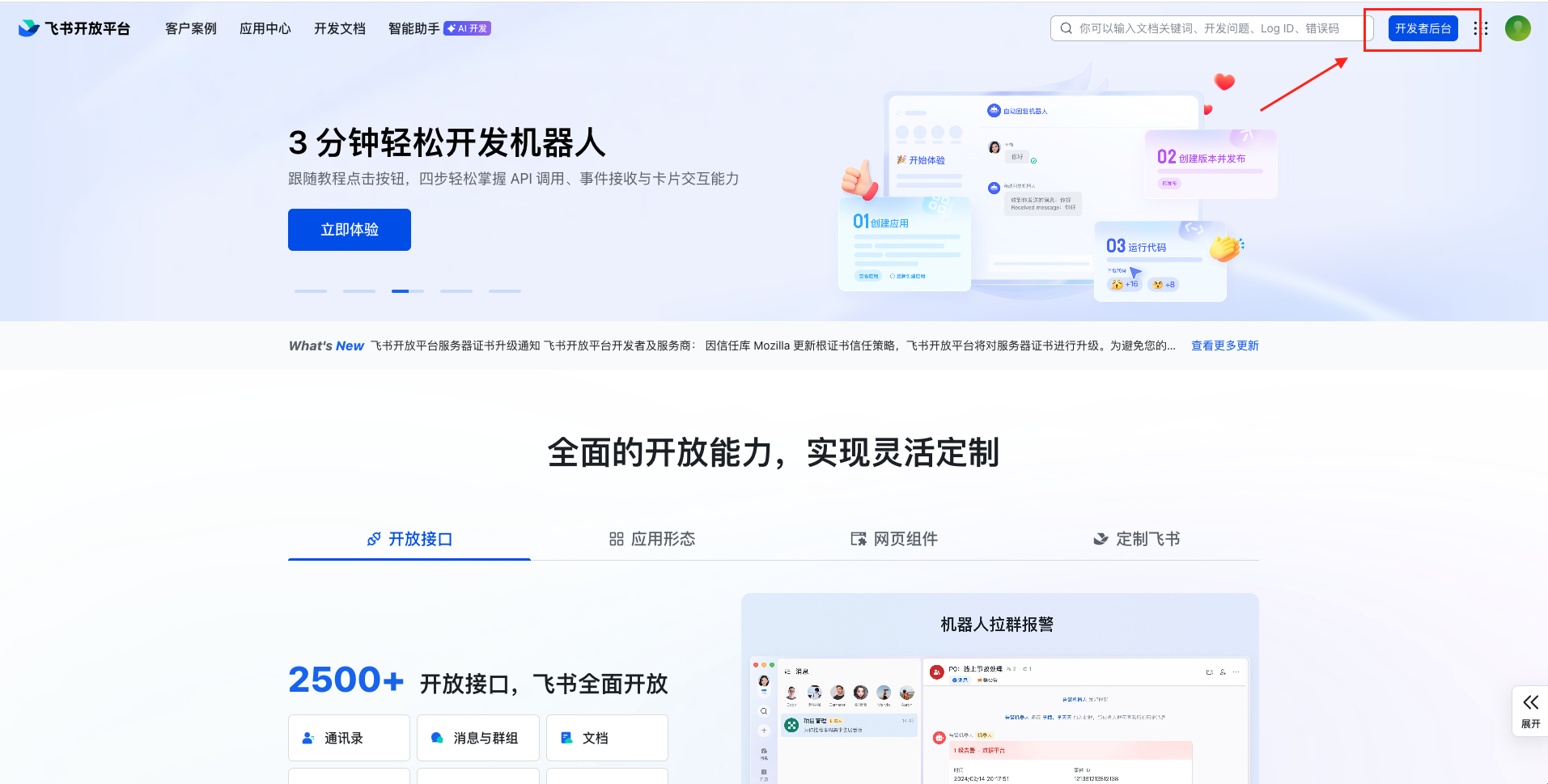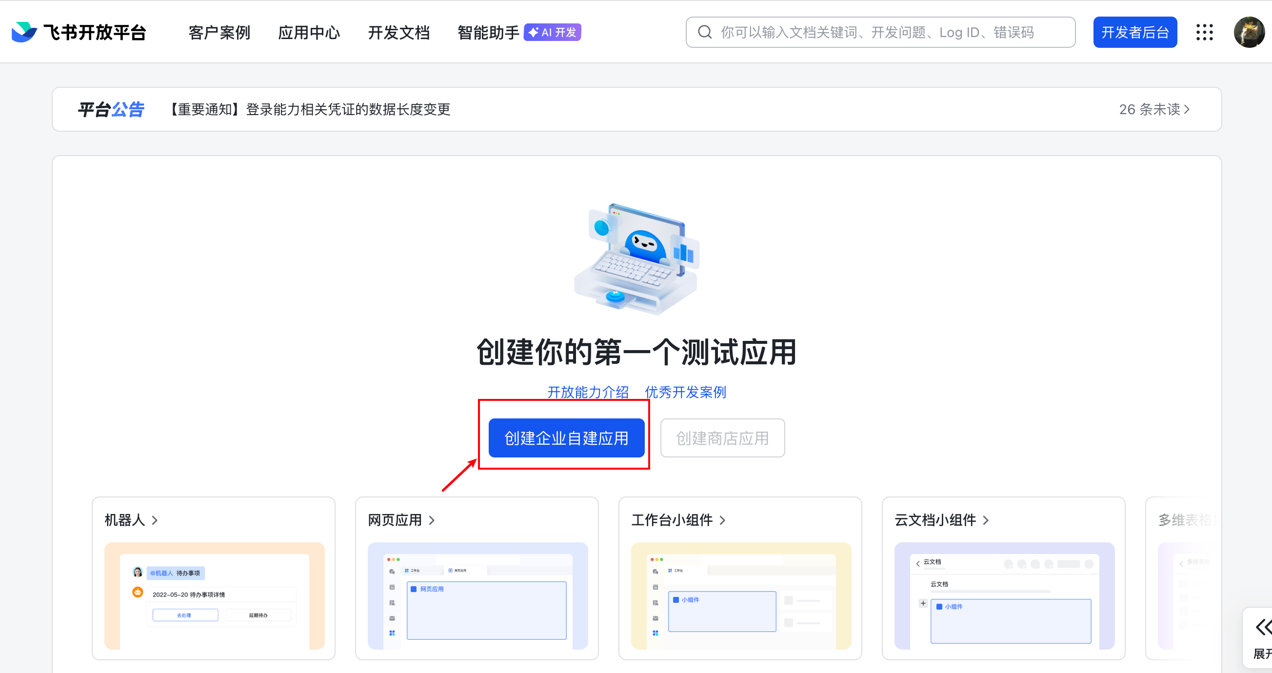 - 打开 飞书开放平台,登录账号
